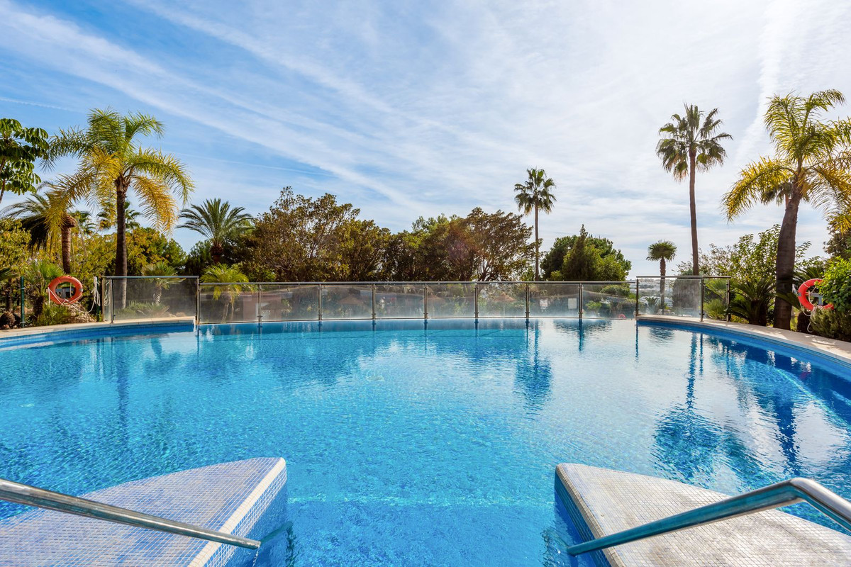 Set within the emblematic community of Magna Marbella, this stunning first floor apartment offers panoramic views to Naranjos Golf and the mountains beyond.