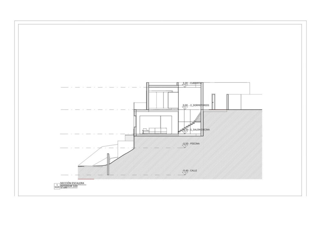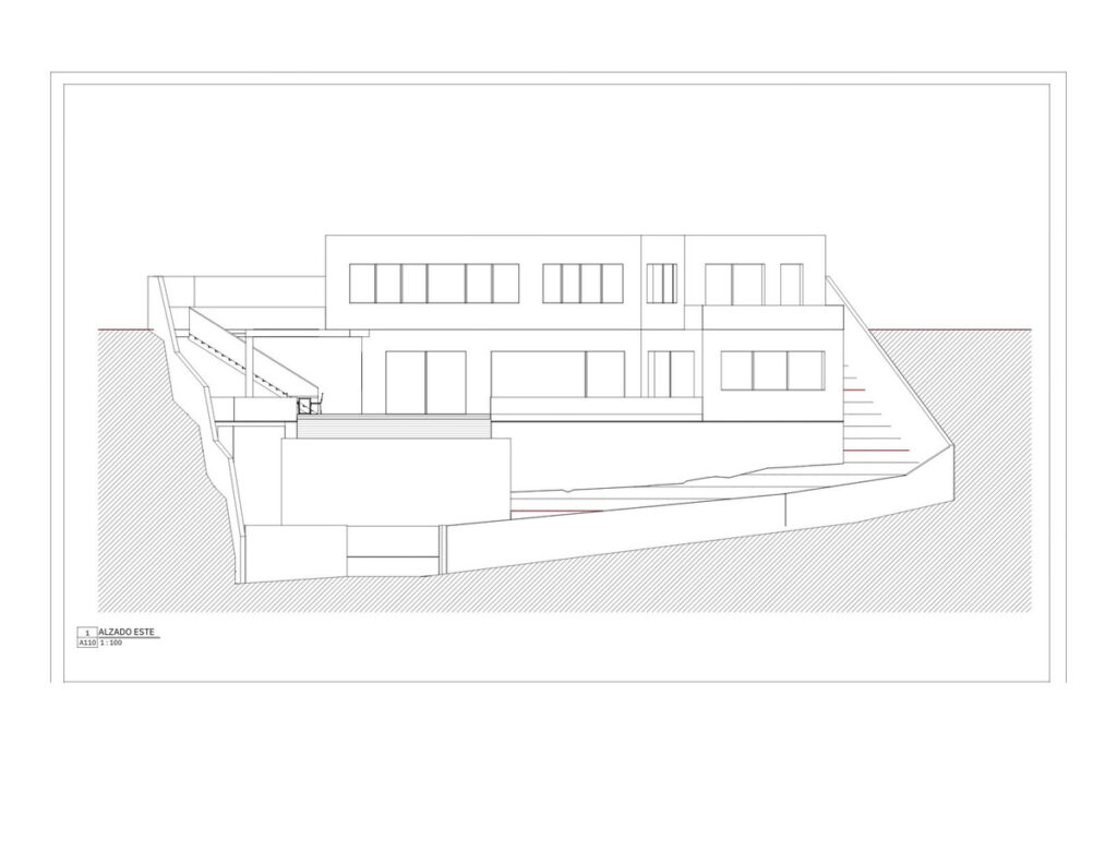 The projected dwelling is modern and functional, with two levels arranged around a side patio that provides illumination and ventilation.