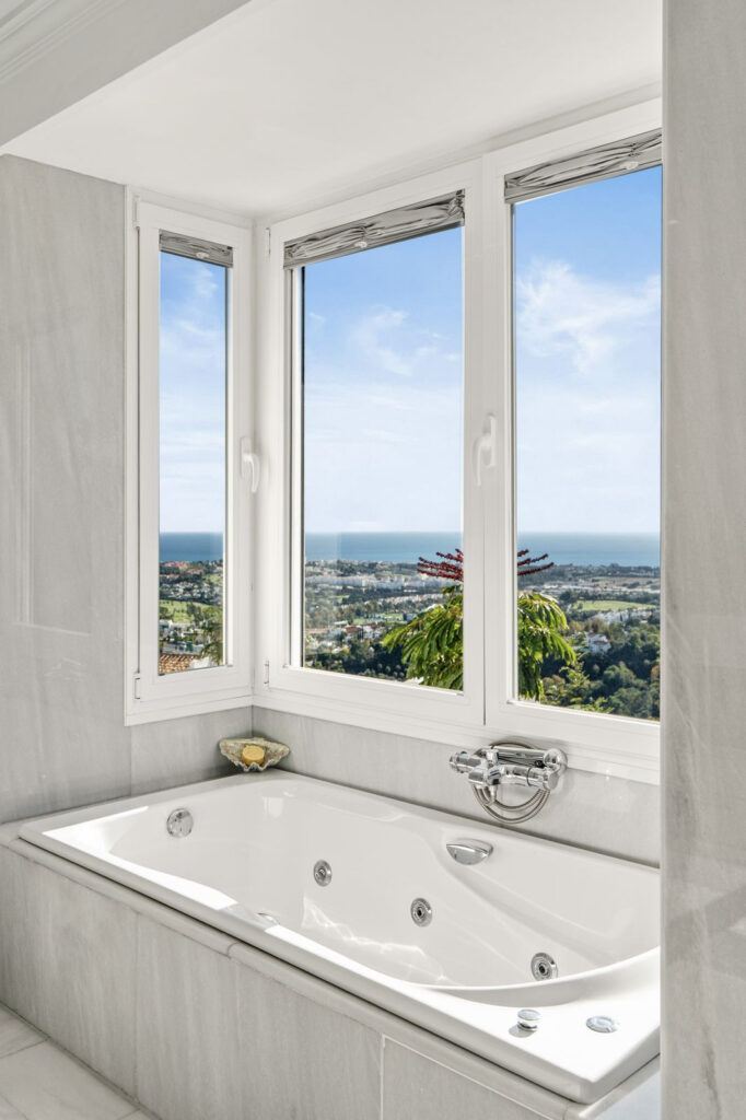 On each floor, you’ll find a separate guest toilet, adding an extra layer of convenience. The master suite (52m2) is situated in the front of the house (south side) and has the same fantastic views. From this suite you have direct access to one of the terraces where a jacuzzi and outside shower are waiting for you and where you can enjoy complete privacy. Just off the hallway, you’ll find a separate laundry/storage room, offering plenty of space to keep household items neatly tucked away.