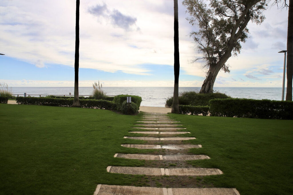 Ground floor apartment for sale in the exclusive Bahía de la Plata urbanisation in Estepona, with a parking space and storage room included.