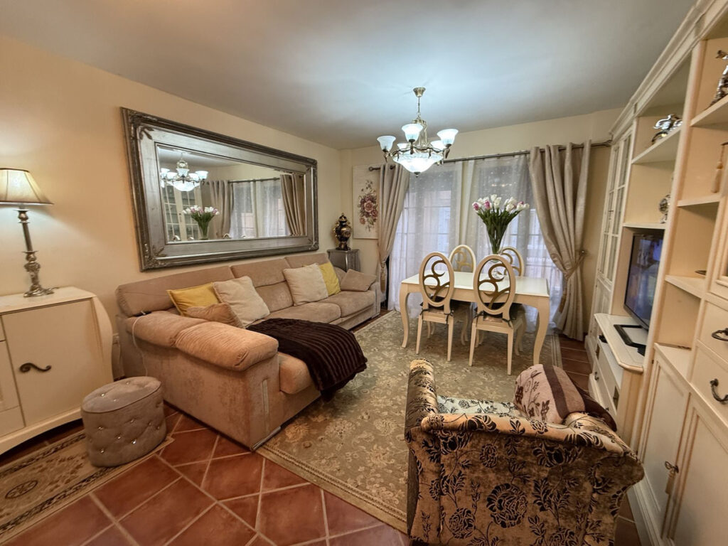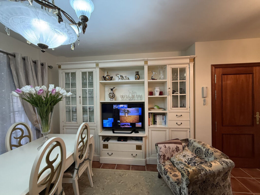 The apartment is sold fully furnished and equipped, including everything inside the property, except for personal belongings.