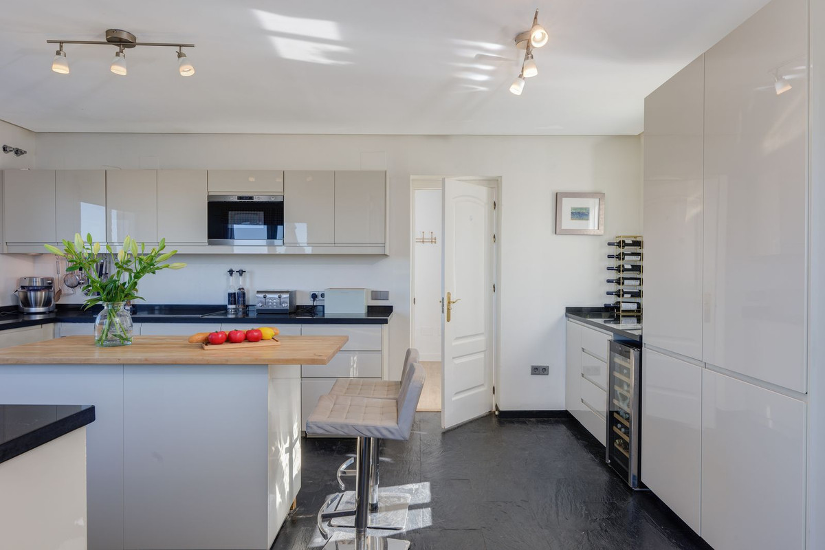 Inside, the villa combines grandeur with intimate comfort. Six elegant bedrooms (most with private terraces) ensure that every guest has their own personal retreat. The heart of the home is any chef's dream: a modern kitchen equipped with an oversized hob, two ovens and a huge American-style fridge-freezer, perfect for hosting large gatherings.