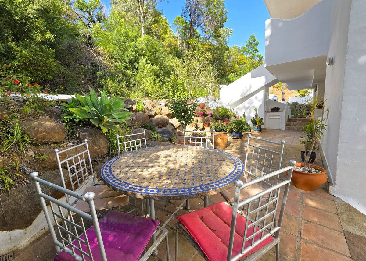 WHAT A VIEW! This superb south facing 3 bed corner duplex apartment lies on the hills of Elviria and boasts utterly breathtaking views to the sea towards the coasts of Africa. Probably the best unit in this small complex of 28 neighbors only, the apartment has been tastefully refurbished and upgraded, is in excellent condition and perrfectly equipped. The property features on a main floor a good size living-dining room open onto a superb terrace with commanding views, luxury open plan kitchen with Silestone work-top and Bosh appliances, one double bedroom with large wardrobes opening onto the main terrace and one bathroom with large walk-in shower. The lower level accommodates the 2nd and 3rd bedrooms both with large wardrobes sharing a large bathroom and a beautiful covered terrace with stunning views as well. This property is by far the most private within the complex and benefits from a large rear patio with al-fresco dining and BBQ area and a private storage room. The community is gated, very peaceful and private, perfectly integrated in the naturals surroundings with a superb swimming-pool and parking spaces. Ideal for long term stay or family holiday. It really worths a viewing.