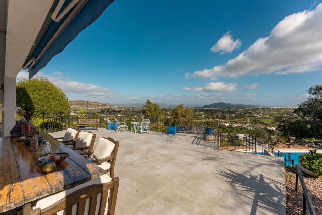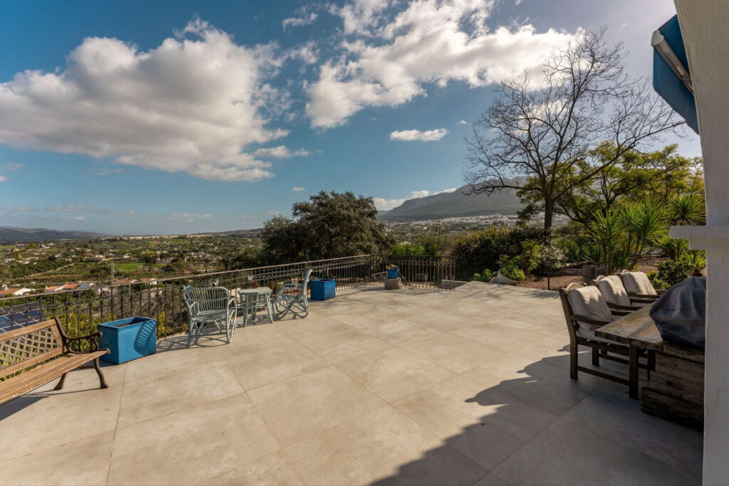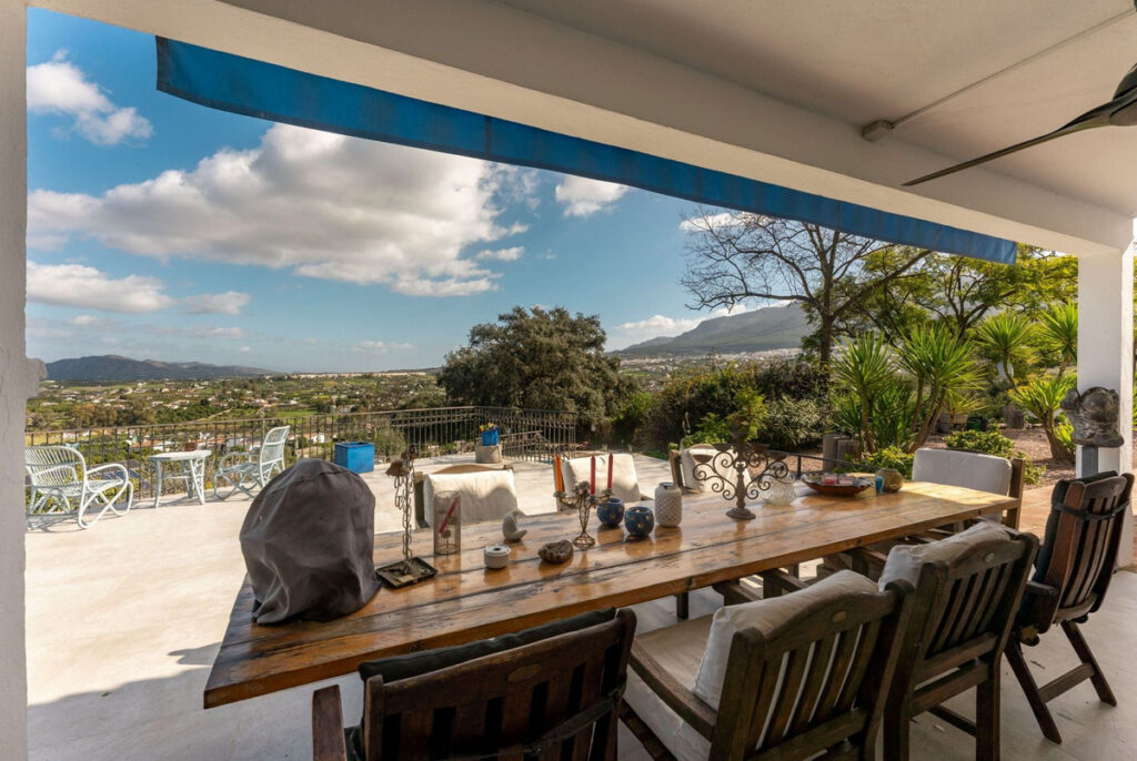 New to the market, this immaculate country property is ideally located in a prime position between Alhaurín el Grande and Coín, offering excellent road access to Marbella, Fuengirola and Málaga. The property enjoys stunning open mountain views while maintaining complete privacy, surrounded by mature vegetation and beautifully established gardens. The main house, all on one level, has been renovated to a very high standard and combines charm with modern comfort including underfloor heating and cooling system thoughout. It offers a spacious open-plan living and dining area with a feature log burner, air conditioning, and large French patio doors opening directly onto a private terrace overlooking the swimming pool, an ideal space to enjoy the panoramic views throughout the year.