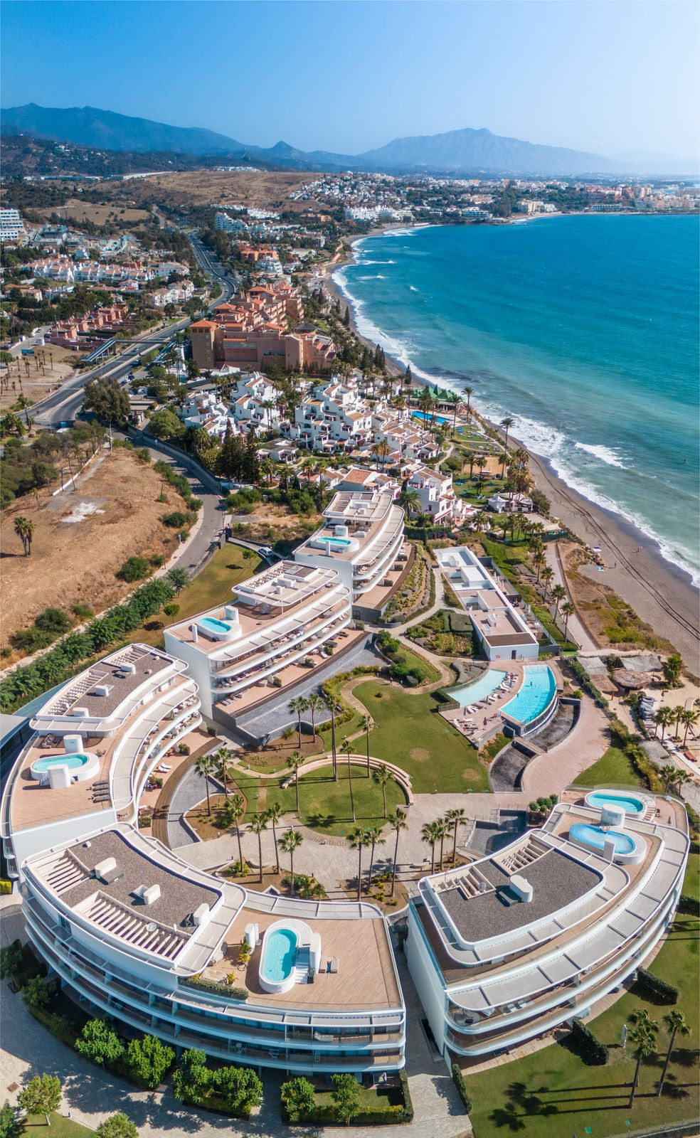 Ideally positioned directly on the beachfront, the development also offers convenient access to nearby restaurants, boutiques, and everyday amenities. Estepona Marina and the town centre are only a short drive away, while Málaga International Airport is approximately one hour by car.