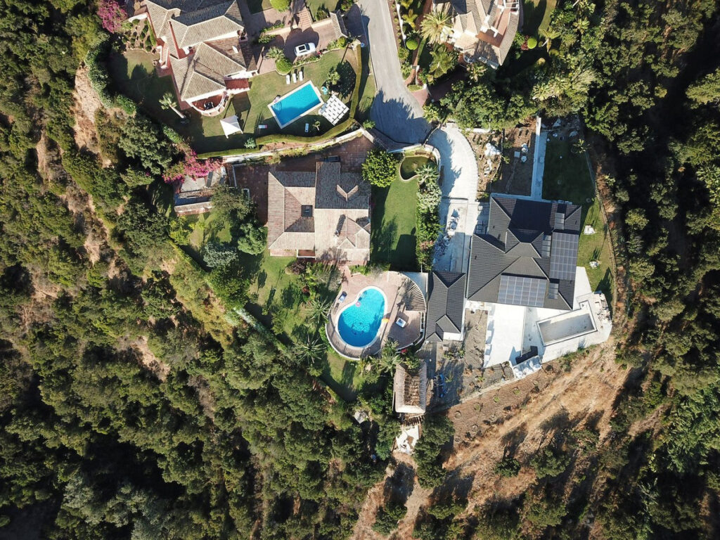 The plot of approximately 2.345 m² borders directly onto a protected green zone. The open views towards the sea, Gibraltar, Africa and the surrounding nature are permanent. Nothing can be built in front of it. The sale includes the existing villa, a definitive demolition licence, a granted building licence, the complete design by renowned Marbella architect and a detailed contractor quotation.