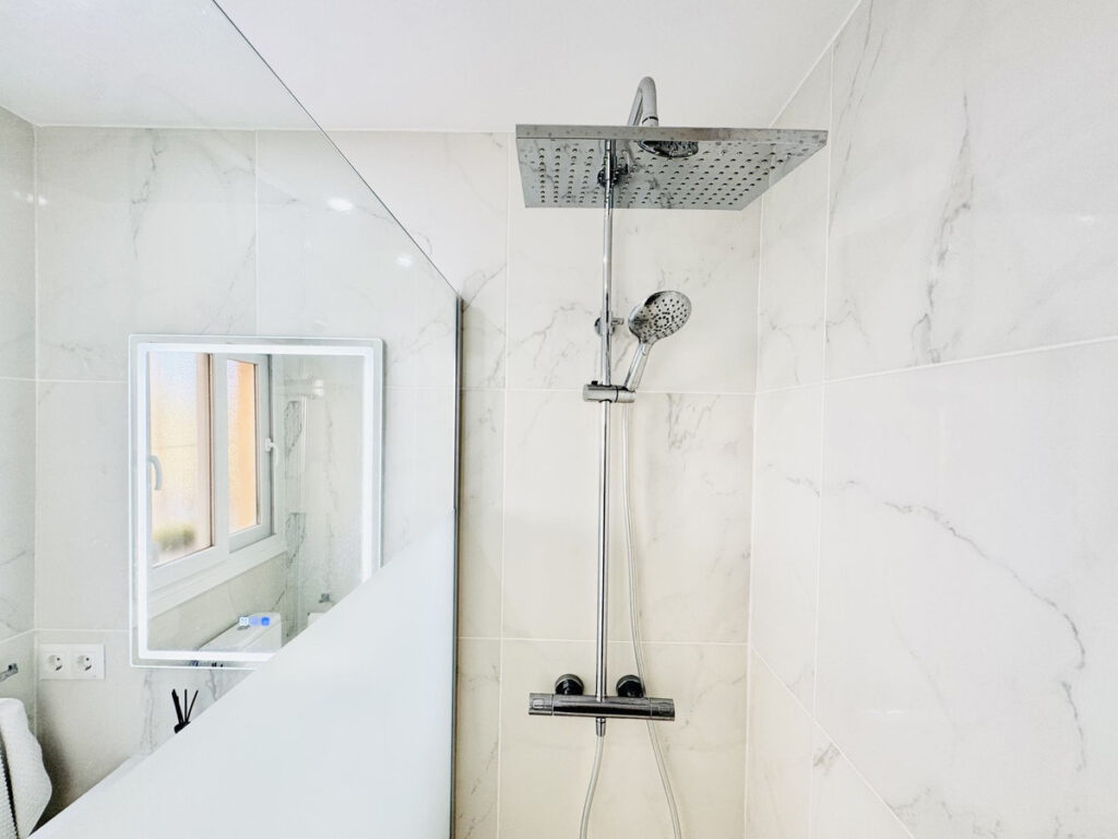 This bright and modern home features two spacious bedrooms and two bathrooms, with an open, airy interior that maximizes natural light throughout. Enjoy your morning coffee or evening relaxation on your south facing balcony with breathtaking sea and city views, or unwind on your private terrace and small frontside lounge – perfect for soaking up the sun in peace and privacy.