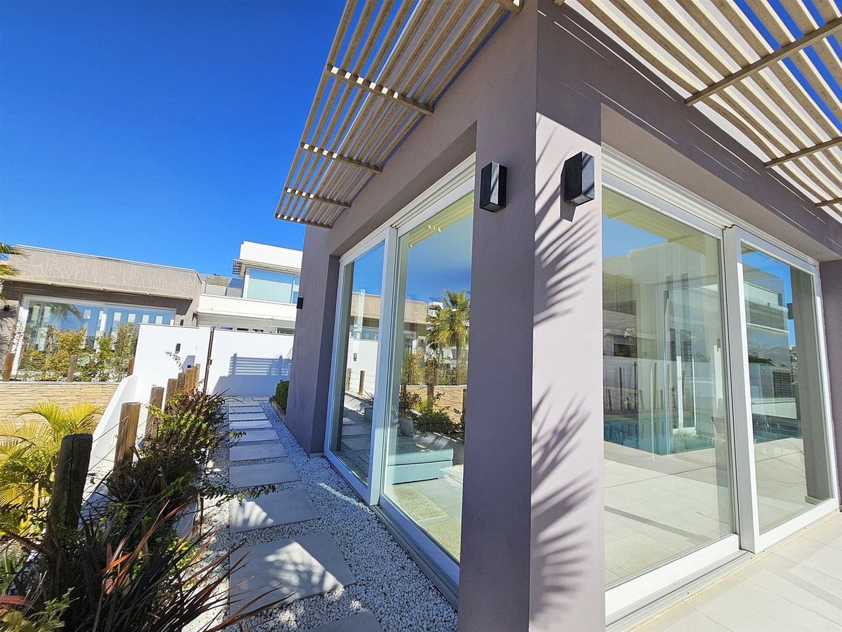All five bedrooms are exterior with ample fitted wardrobes, four benefit from electric curtains, and every bathroom has underfloor heating. The villa is equipped with Airzone air conditioning, a 1,000-litre water reserve, water treatment system, UV-resistant security glass, solar panels, alarm system, safe, high-quality porcelain flooring throughout, gas barbecue, and video entry system.