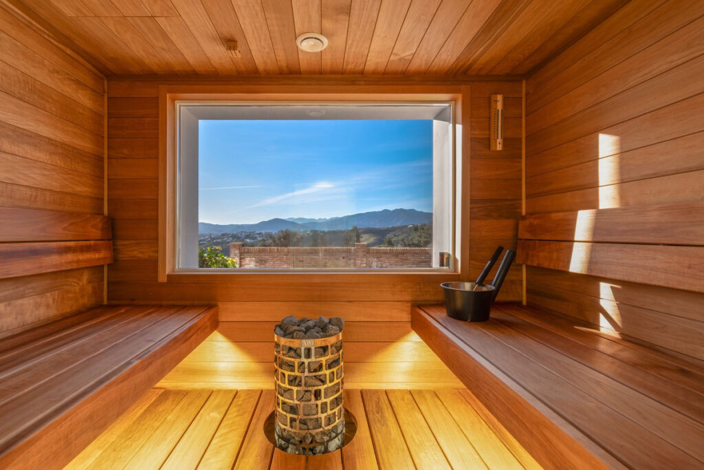 – Separate wellness area with sauna, shower & toilet.