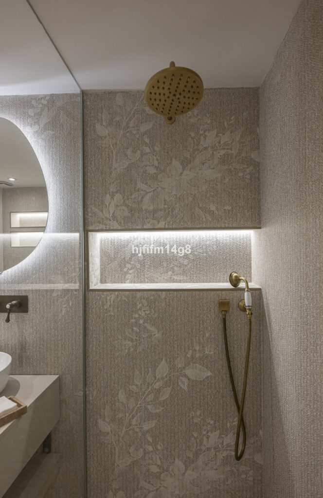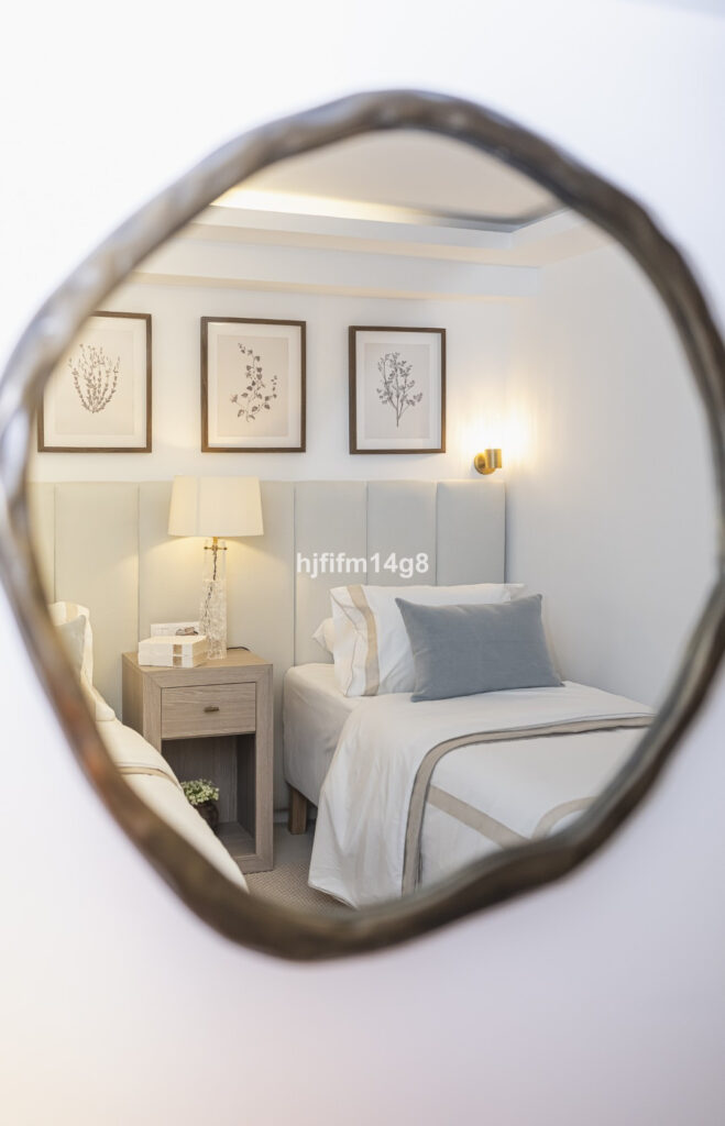 On the lower level, there is an additional bedroom with en-suite bathroom, another guest bedroom, a separate guest bathroom and a practical storage room, offering flexible accommodation for family and visitors. This level also includes distinctive design features such as a high-end vintage eglomisé mirror and luxury handcrafted wall lights, adding character and sophistication to the space.