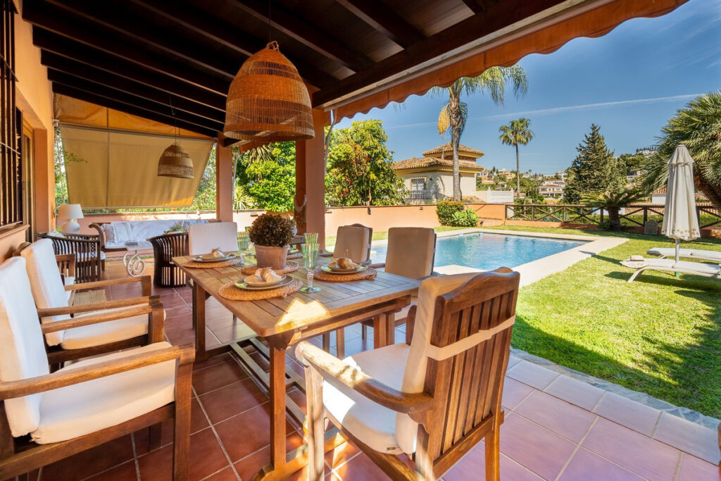 From the moment you enter, the home offers a sense of space and comfort. The spacious and inviting living room opens directly onto the terrace, garden, and private swimming pool, creating the perfect setting to enjoy the Costa del Sol lifestyle all year round, with pleasant mountain views.