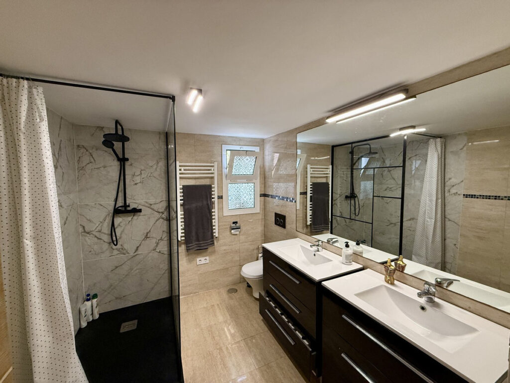 A standout feature of this home is the additional self-contained apartment located in the basement. This generous space includes two bedrooms, a kitchen, living area, and bathroom, along with direct access to the pool area and its own private terrace. It is ideal for visiting guests, extended family, or offers excellent rental potential.